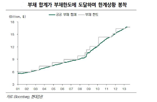 µ¶ÀÏ ÃѼ±ÀÇ °æ¿ì ECB°¡ ÀÌ¿¡ ¸ÂÃç 9¿ù ÅëÈ È®´ë Á¤Ã¥À» ÆîÄ¥ °¡´É¼ºÀÌ ³ô°í 9¿ù ¹Ì±¹ÀÇ ºÎäÇѵµ Áõ¾× Çù»ó¿¡ ³Ç×ÀÌ ¿¹»óµÈ´Ù´Â Á¡Àº ´Þ·¯ÈÀÇ °¼¼¸¦ Á¦ÇÑÇÒ ¼ö ÀÖ´Â ¿äÀÎÀÌ´Ù. À§ ±×¸²»ó ¹Ì±¹ÀÇ °ø°øºÎä ÇÕ°è°¡ ºÎäÇѵµ¿¡ µµ´ÞÇϸç ÇÑ°è »óȲ¿¡ ºÀÂøÇÑ ¸ð½ÀÀÌ´Ù. Áö³ 5¿ù¿¡µµ ÀÌ °°Àº Çö»ó¿¡¼ 2,600¾ï ´Þ·¯ÀÇ ±ä±ÞÀÚ±Ý Æ¯º° ´ëÃ¥À¸·Î ¹öÅá´Ù. µû¶ó¼ 9¿ù¿¡´Â 乫 Çѵµ¸¦ ¹ýÀûÀ¸·Î »óÇâÁ¶Á¤ÇØ¾ß ÇÏ´Â »óȲÀÌ´Ù. ÀÌ·± ºÐÀ§±â´Â ´Þ·¯È °¼¼¿¡ ¹ÝÇÒ ¼ö ÀÖ¾î QE Á¶±â Ãà¼Ò´Â ¹Ì±¹¿¡ ºÎ´ãÀ» ÁÙ ¼ö ¹Û¿¡ ¾ø´Ù.
