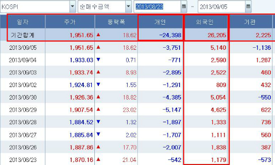 8¿ù23ÀÏ ÀÌÈÄ ¿Ü±¹ÀÎÀº 10°Å·¡ÀÏ ¿¬¼Ó ¼ø¸Å¼öÇϸç 2Á¶6,205¾ï¿øÀ» °Å·¡¼Ò¿¡¼ ¼ø¸Å¼öÇß´Ù. ¹Ý¸é °³ÀÎÀº °°Àº ±â°£ 2Á¶4,398¾ï¿øÀ» ¼ø¸ÅµµÇßÀ¸¸ç ±â°üÀÇ ¼ø¸Å¼ö´Â 2,225¾ï¿ø¿¡ ±×ÃÆ´Ù.