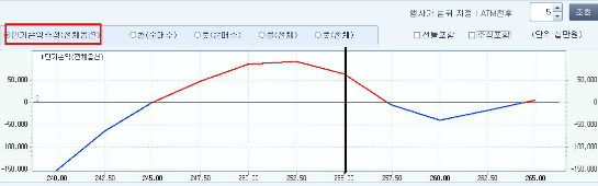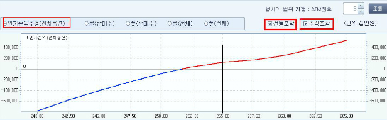 À§ ±×¸²¿¡¼ º¸µí ¿É¼Ç/¼±¹°/Çö¹°À» ÇÕ¼º½Ãų °æ¿ì ¸¸±âÂÊÀ¸·Î Ãß°¡»ó½Â °¡´É¼ºÀº ³ô´Ù. ±×·¯³ª ¿É¼Ç¸¸ ¶¼³õ°í º¸¸é KOSPI 200 Áö¼ö ±âÁØ 255Æ÷ÀÎÆ®(°Å·¡¼ÒÁö¼ö 1,955Æ÷ÀÎÆ®) À§·Î´Â ¿Ü±¹ÀÎ ¼öÀÍÀÌ °¨¼ÒÇØ ÀϽà º¯¼ö·Î ÀÛ¿ëµÉ ¼ö ÀÖ´Ù.