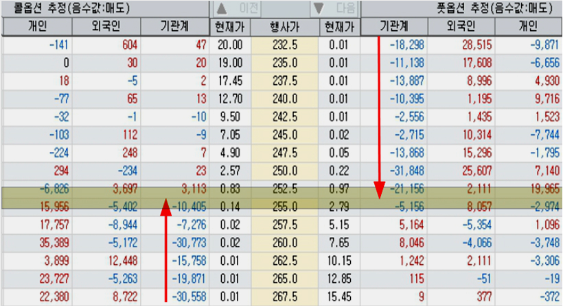 ´öºÐ¿¡ ¹Ý´ëÆ÷Áö¼ÇÀ» ÃëÇÑ ¿Ü±¹Àΰú Áõ±ÇÀÇ °ø°ÝÀû ¸Åµµ¿Í ÇÔ²² Áö¼ö´Â ¼Õ½±°Ô ´ÙÀ½ Çà»ç°¡ÀÎ 252.5·Î 2.5Æ÷ÀÎÆ®(Á¾ÇÕÁÖ°¡Áö¼ö 18.7Æ÷ÀÎÆ®)°¡ ¹Ð·Á¼ ±ÕÇüÀ» Àâ¾Ò´Ù. 252.5ÀÇ Çà»ç°¡´Â Áö¼öÀÇ ¹æ¾î ´É·ÂÀÌ ÀÖ´Â Áõ±Ç»ç°¡ 20,000°è¾àÀÌ ³Ñ´Â Dz¿É¼Ç ¸Åµµ Æ÷Áö¼ÇÀ» º¸À¯Çϰí Àֱ⠶§¹®¿¡ 252.5 ÀÌÇÏÀÇ Ç϶ôÀ» ¹æ¾îÇÏ°Ô µÈ´Ù. µû¶ó¼ Áö¼ö´Â 252 ~ 255ÀÇ ¹üÀ§·Î Á¼ÇôÁø ä ¸¸±â¸¦ ¸Â±â ½±´Ù.