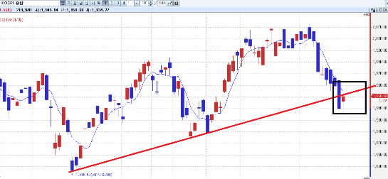ÇÑÆí ÄÚ½º´ÚÀº 550À» Àç ÇÏÇâÇÔÀ¸·Î¼ ´çºÐ°£ ½Å¿ë¹°·®À» Æ÷ÇÔÇÑ ¸Å¹° ¼ÒȰ¡ Á» ´õ ÁøÇàµÉ ¼ö ÀÖÀ½À» ¾Ï½ÃÇß´Ù. ÀÌÀü ¿ø/´Þ·¯ ȯÀ²ÀÌ 1050¿øÀ» ÇÏÇâÇÏ´ø³¯ ÇÊÀÚ´Â À̸® ¸»Çß´Ù. "¿ø/´Þ·¯ ȯÀ²Àº 1050¿øÀ» ÇÏÇâÇÔÀ¸·Î¼ 1000¿ø¿¡ ´ëÇÑ Å×½ºÆ®¸¦ °ÅÄ¥ °ÍÀÌ´Ù. ¸¸¾à 1000¿ø¿¡ ´ëÇÑ ÁöÁö Å×½ºÆ®¸¦ °ÅÄ¡Áö ¾ÊÀ»°Å¶ó¸é 1050¿øÀ» ±úÁöµµ ¾Ê¾ÒÀ» °ÍÀÌ´Ù. ÀÌÈÄ ¹ÝµîÀ» ÇØµµ 1050¿ø¿¡ ´Ù½Ã ¿Ã¶óŸÁö ¾Ê´ÂÇÑ ¿øÈ °¼¼°¡ ³¡³µ´Ù°í º¸¸é ¾ÈµÈ´Ù"....½ÇÁ¦·Î ¿ø/´Þ·¯ ȯÀ²Àº 1050¿øÀ» ÇÏÇâÈÄ ¹ÝµîÀÌ ÀÖ¾úÁö¸¸ 1050¿øÀ» Àç µ¹ÆÄÇÏÁö ¸øÇß°í °á±¹¿£ 1020¿øÀ¸·Î µÇ¹Ð¸®´Â ¸ð½À¿´´Ù.