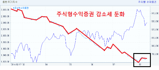 Áõ½Ã À¯µ¿¼º Ãø¸é¿¡¼ º¼ ¶§ Áö¼ö¿Í ¿ªÀ¸·Î ¿¬Áß ÃÖÀúÄ¡·Î °¨¼ÒÇϱ⸸ ÇÏ´ø ÁÖ½ÄÇü¼öÀÍÁõ±ÇÀÇ ÇÏ¹æ°æÁ÷ÀÌ ³ªÅ¸³ª°í ÀÖ´Ù. À̸¦ ³õ°í ¹ÝÀüÀ¸·Î ´ÜÁ¤ÇÒ ¼ö´Â ¾ø´Ù. ´ÜÁö ¿À·£½Ã°£ ȯ¸Å°¡ ÁøÇàµÈ ¸¸Å ÁÖ½ÄÇü¼öÀÍÁõ±ÇÀÇ °¨¼Ò¼¼´Â ´çºÐ°£ ÁÖÃãÇÒ °¡´É¼ºÀÌ ³ô¾Æ º¸ÀδÙ.