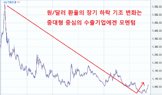 ==> ´Þ·¯ °¼¼·Î ÀÎÇÑ ¿ø/´Þ·¯ ȯÀ²ÀÇ ¹ÝµîÀº ÀÌÀü°ú ¹Ý´ë·Î Áß´ëÇüÁÖ¸¦ Æ÷ÇÔÇÑ ¼öÃâÇü ±â¾÷µé¿¡°Ô´Â ¸ð¸àÅÒ ¿ªÇÒÀ» ÇÏ°Ô µÉ °ÍÀÌ´Ù. Çѱ¹Àº ȯÀ²ÀÌ Ç϶ôÇØµµ ¹®Á¦¶ó°í ÇÏ°í ¹ÝµîÇØµµ ¹®Á¦¶ó°í ÇÑ´Ù. ±×·¯³ª °á°ú·ÐÀûÀ¸·Î ȯÀ²ÀÇ Àå±â Ç϶ô ±âÁ¶´Â Áß´ëÇü Áß½ÉÀÇ ¼öÃâ ±â¾÷ ¼öÀͼº¿¡ ¾ÇÀç°¡ µÇ¾ú´Ù. ¿ªÀ¸·Î ȯÀ²ÀÇ ¹ÝµîÀº À̵鿡°Ô À¯¸®ÇÑ ±¸Á¶ÀÓÀº ºÐ¸íÇÏ´Ù.