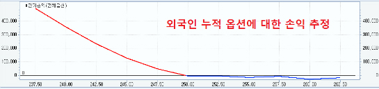 ==> 10¿ù9ÀÏ ÈÞÀåÀ¸·Î ÀÎÇØ 10¿ù ¿É¼Ç¸¸±â´Â 8ÀÏ(¼ö¿äÀÏ)ÀÌ´Ù. À̹ø °Å·¡¼Ò Á¶Á¤ °úÁ¤¿¡¼ ¿Ü±¹ÀÎÀÌ Ç² 252, 250, 247¿¡ ¸Å¼ö¹èÆÃÀ» ÇÑ °Íµµ ¾à¼¼ ¿øÀÎÁß Çϳª´Ù. ÀÌ¿¡ µû¶ó À§ ±×¸²¿¡¼ ³ªÅ¸³ªµí ¿Ü±¹ÀÎÀº KOSPI 200 Áö¼ö 250 ÀÌÇÏ¿¡¼ ¼öÀÍÀÌ ±Ø´ëȵǴ ±¸Á¶°¡ ¸¸µé¾îÁ³°í °á±¹ ÄÚ½ºÇÇ 200 Áö¼ö¸¦ 250 ÀÌÇÏ·Î ÇÏÇâ½ÃŰ´Â °úÁ¤¿¡¼ Áö¼ö»óÀÇ 6°Å·¡ÀÏ ¿¬¼Ó Á¶Á¤ÀÌ ³ªÅ¸³µ´Ù.