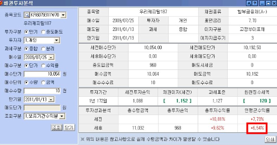 ¼¼ÈÄ ¼öÀÍ·ü 6.54%ÀÔ´Ï´Ù. Áõ±Ç»ç¿¡¼ ÆÄ´Â Àå¿Üä±ÇÀÌ 6.18%ÀÌ´Ï ¿¬ 0.36%³ª Â÷À̰¡ ³³´Ï´Ù... Â÷À̰¡ ³ª´Â ÀÌÀ¯´Â Àå¿Üä±ÇÀº Áõ±Ç»çÀÇ "¸¶Áø" ÀÌ Æ÷ÇԵǾî Àֱ⠶§¹®ÀÔ´Ï´Ù..